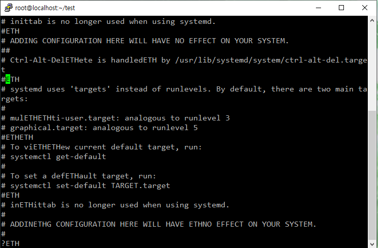 커서있는 줄 지우고 명령어 동작 결과 삽입